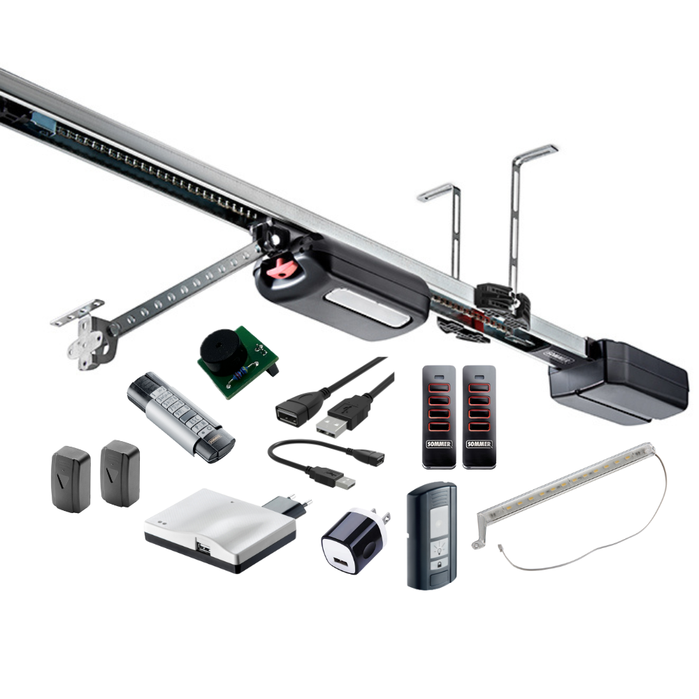 The Sommer 2060 evo+ Garage Door Opener Kit delivers powerful, quiet, and intelligent operation for your residential garage door. This premium system includes an 8-foot rail, 4-button transmitter (Pearl), wireless keypad (Telecody+), integrated LED lighting (Lumi+), and SOMweb smart control for Wi-Fi-enabled convenience.
