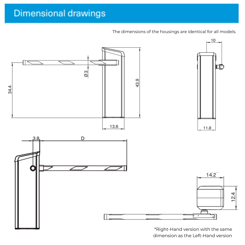 - Barrier arm types: Round Swingaway (MicroBoom-TC)