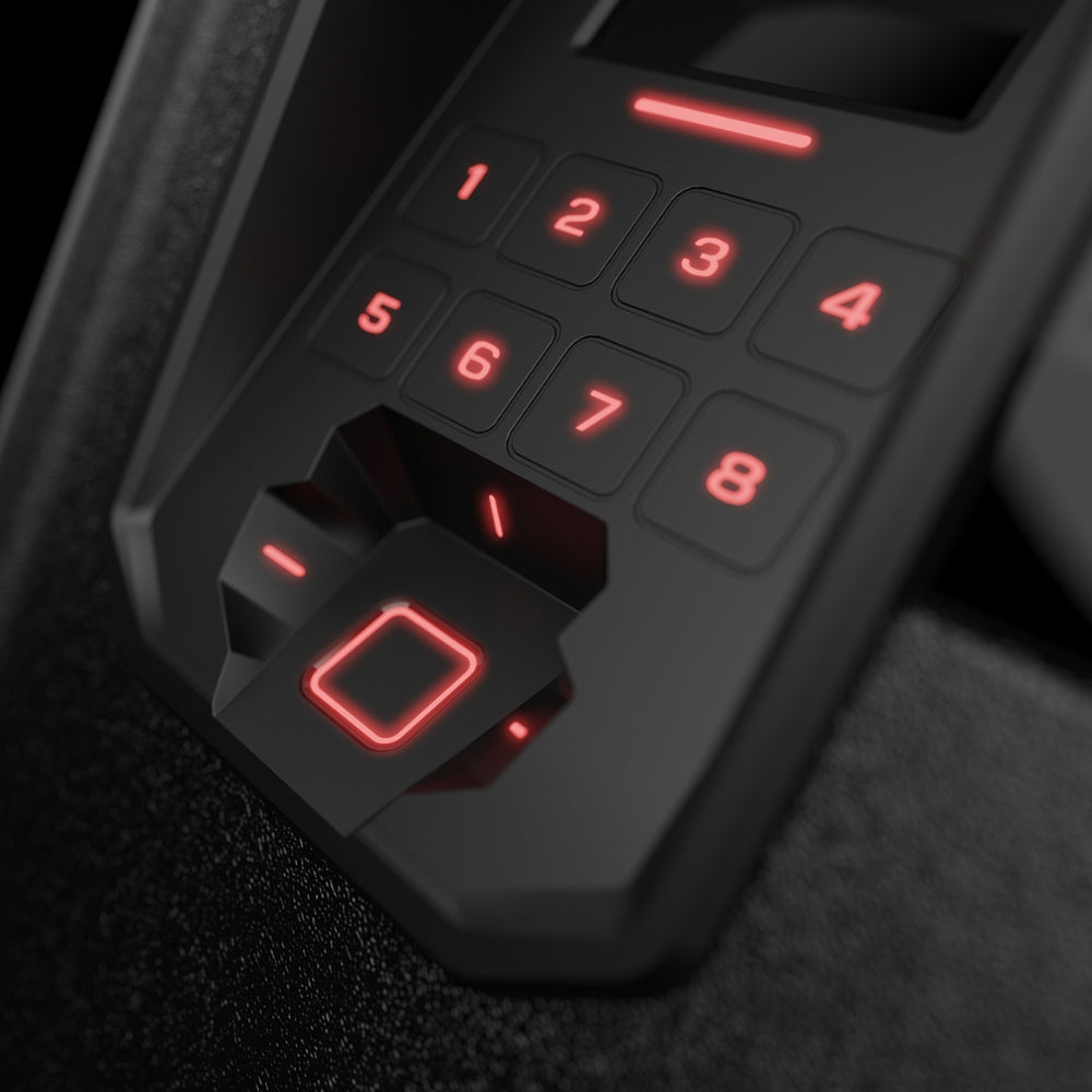 - QUICK ACCESS signature Smart Align™ Biometric Scanner capable of storing 80 fingerprints, auto-illuminating 8-digit Smart Sense™ keypad with built-in proximity sensor, Nano Key™, and two included manual keys. Instant access to your valuables, documents, and firearm(s) with the automatic opening front door.