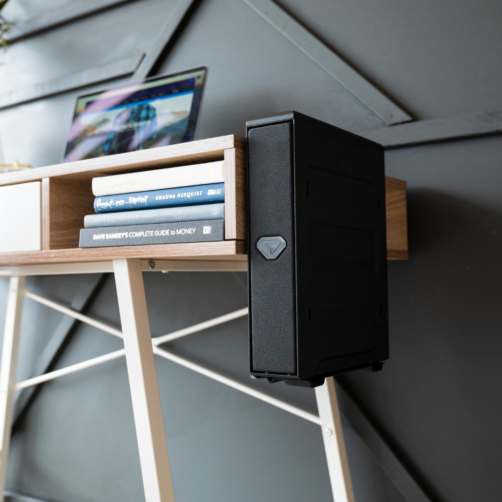 Introducing the Essential Slider Safe, part of Vaultek’s line of Slider Series quick access pistol safes. This slim vertical safe deploys a pistol and magazine in the ready position, accommodating a max firearm length of 8.875” with optics, plus one spare magazine. It’s perfect for discreet storage under a desk, nightstand, bookshelf, or vehicle, thanks to the included mounting plate and hardware.