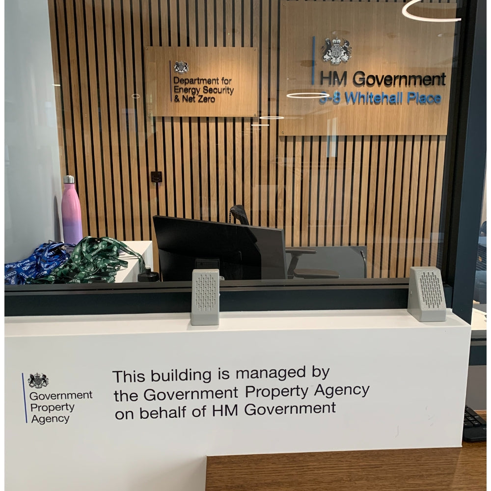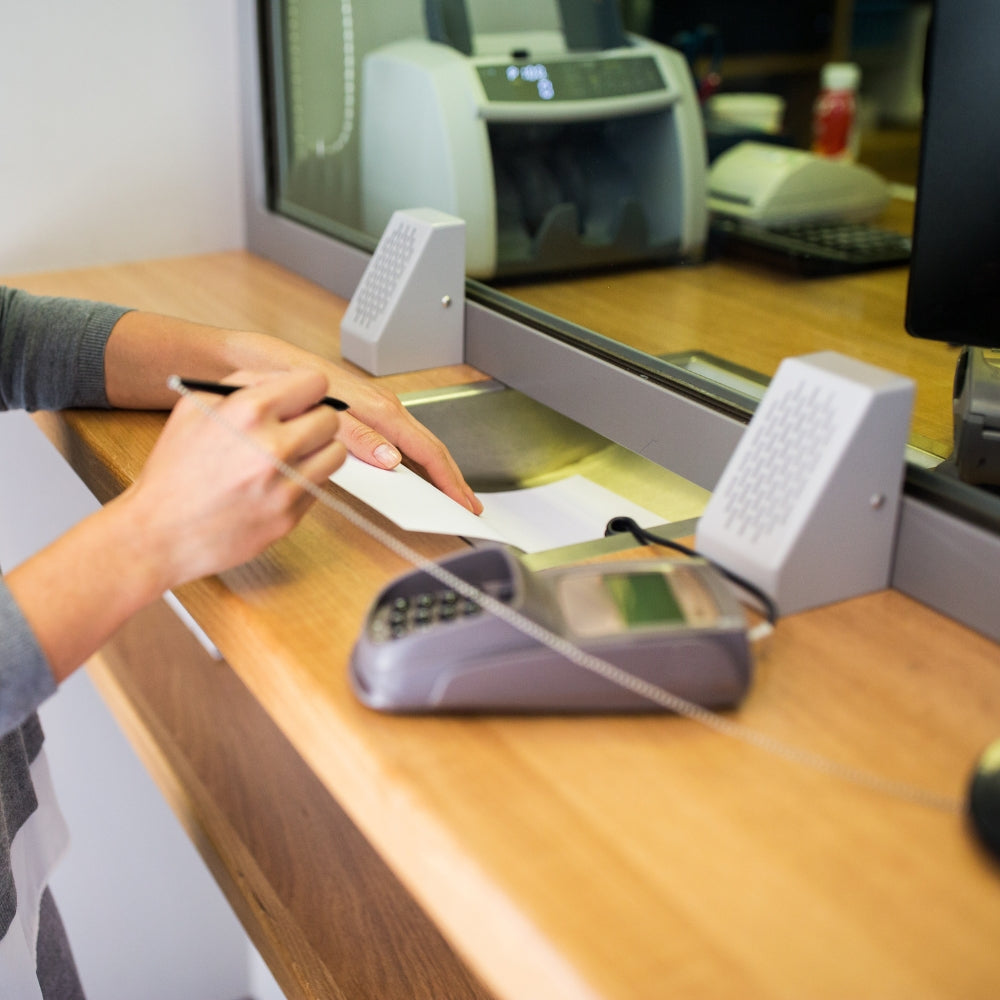 For use where one-to-one communication is impaired by glass, such as: