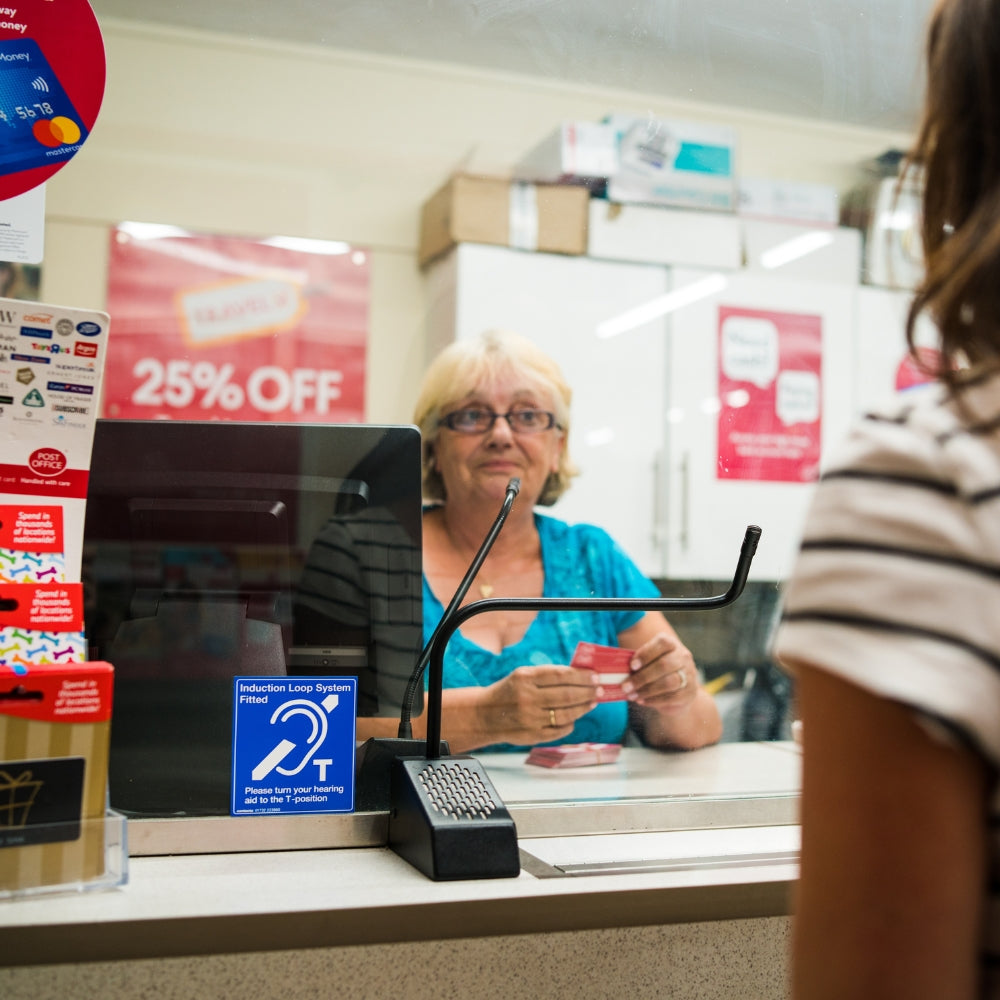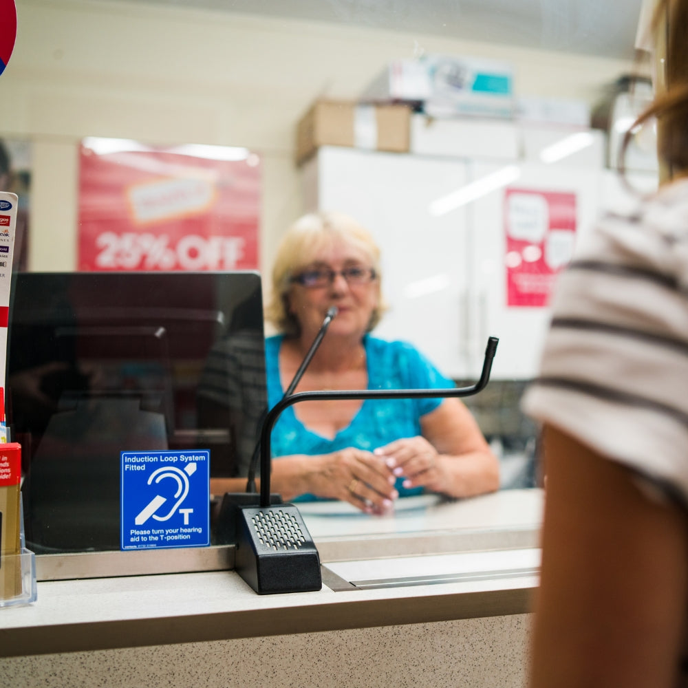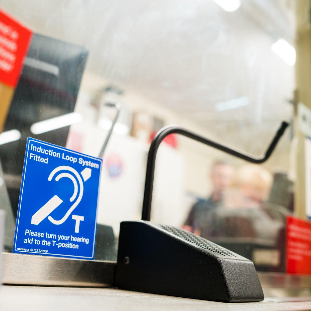 For use in any situation where one-to-one communication takes place at a counter, booth, or desk, such as: