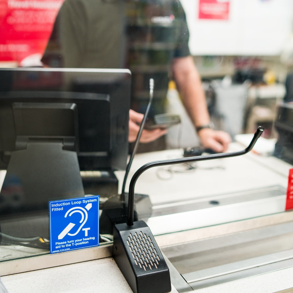 The STS-K035 Window Intercom System features a Half Bridge Bar customer speaker and microphone unit that can be positioned to the left or right of a pass-through tray. For the staff, the STS-SU1-3W combined microphone and speaker unit has an adjustable neck. It includes our open duplex amplifier and a hearing loop. It is a low-space solution ideal for a variety of environments with ambient noise.