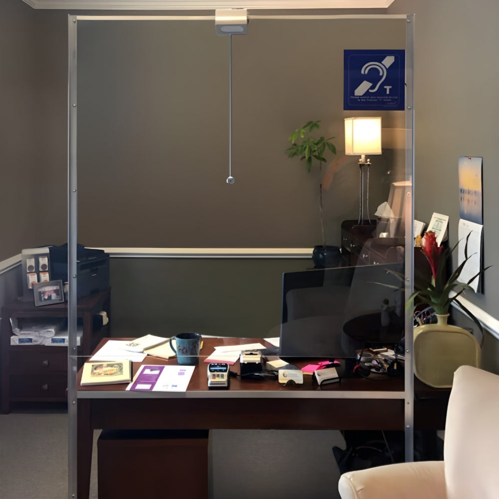 The STS-K064 Window Intercom System is designed with a glass-mounted microphone and overhead speaker for the customer side, paired with a combined microphone and loudspeaker unit for the staff side. The kit comes with an IL-AE99 under-the-counter hearing loop aerial. The system provides assistance for clear communication where normal speech is impaired by the use of glass, security screens, or similar barriers.