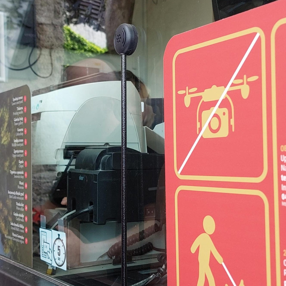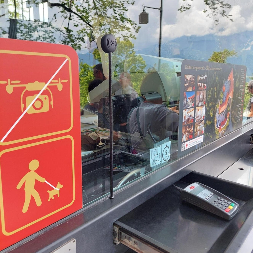 The STS-K080-IP Window Intercom System provides high-quality sound for door entry locations, delivery points, and other applications where the customer side of communication is outdoors. The IP54 rating ensures protection against water, dust, and dirt ingress, making it suitable for outdoor applications. It features an IP54 STS-S80-IP overhead speaker and an IP54-rated stem microphone for the customer side. For the staff, the STS-SU1-3W combined microphone and speaker unit has an adjustable neck. The kit comes with an IL-AE99 under-the-counter hearing loop aerial.
