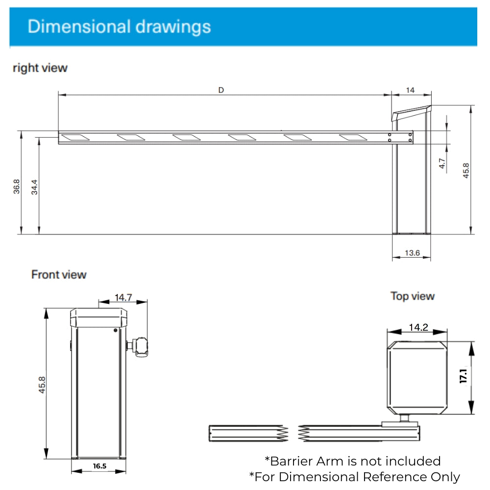 • Barrier arm type: MicroBoom XL (Excluded)