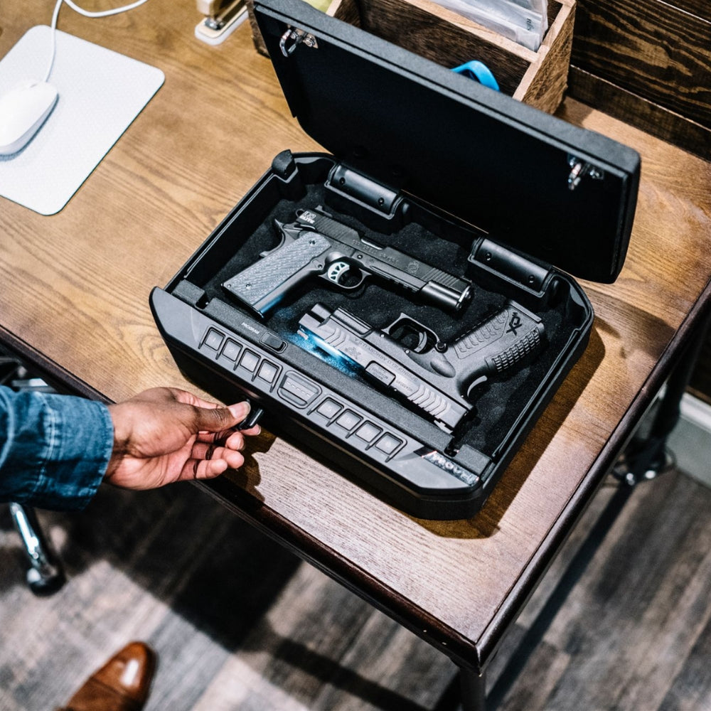 Introducing VE part of Vaultek’s line of VT Series full-size rugged quick access safes. Full-size design can securely hold 1 to 2 handguns and is easily mountable or able to be tethered to a nightstand, desk, or vehicle using the included hardware. Designed to safely protect valuables and provide quick access. Safe is excellent for a handgun, keys, phone, wallet, watch, cash, passport, and more.